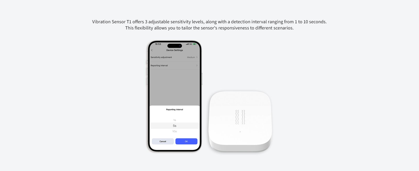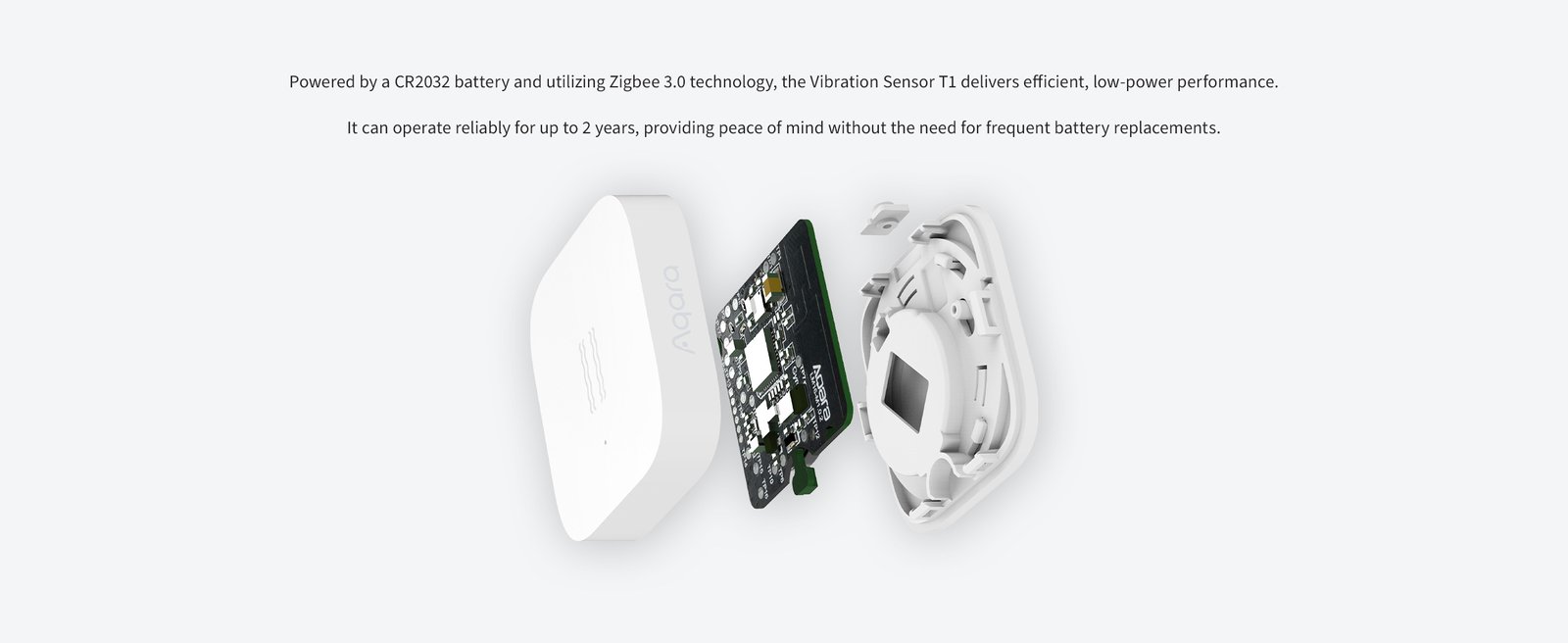 Vibration Sensor T1 е паметен сензор дизајниран за детекција на вибрации, удари и поместување. Идеален е за безбедносни сценарија како заштита на прозорци, сефови, врати или вредни предмети. Овозможува брзи известувања и активирање автоматизации при детекција на неочекувани движења.